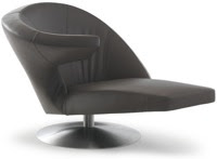 | FurnID for Fredericia's Dekka daybed, the most uncomfortable piece of decorative furniture I have seen in a while. If you get a chance, the description reads like a parody of art criticism, 'soft yet hard, white yet black' et cetera. | Defne Koz for Megaron's stainless steel Dondola chairs, which I refuse to believe is intended for a 'domestic environment.' |